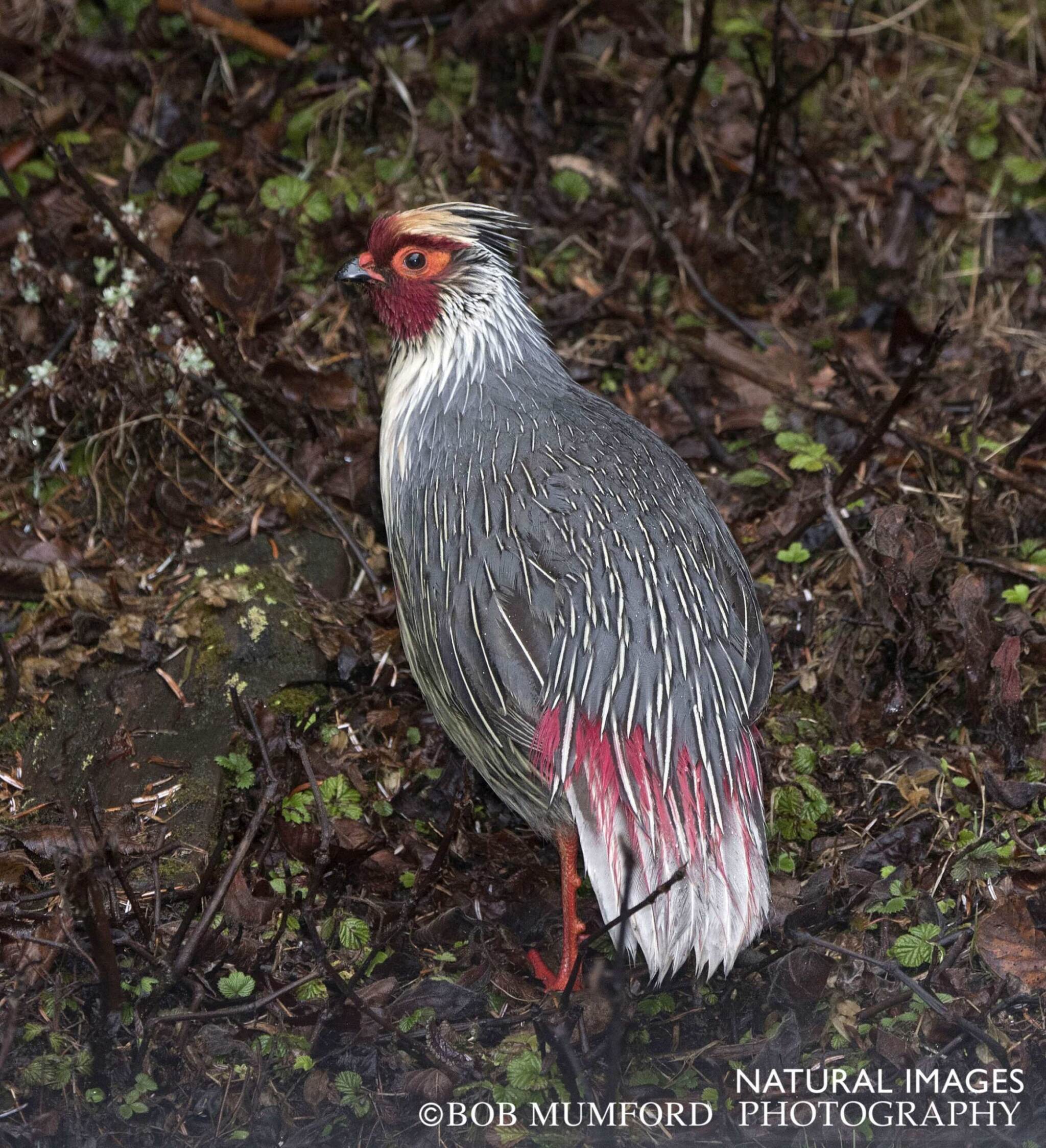 This cock was found in a covey of six or seven birds on a mountain pass in central Bhutan. They are a rather common attitudinal migrant, living in rhododendron and fir forest near the snow line most of the year. If there is heavy snow at high elevations in the winter, it moves lower.