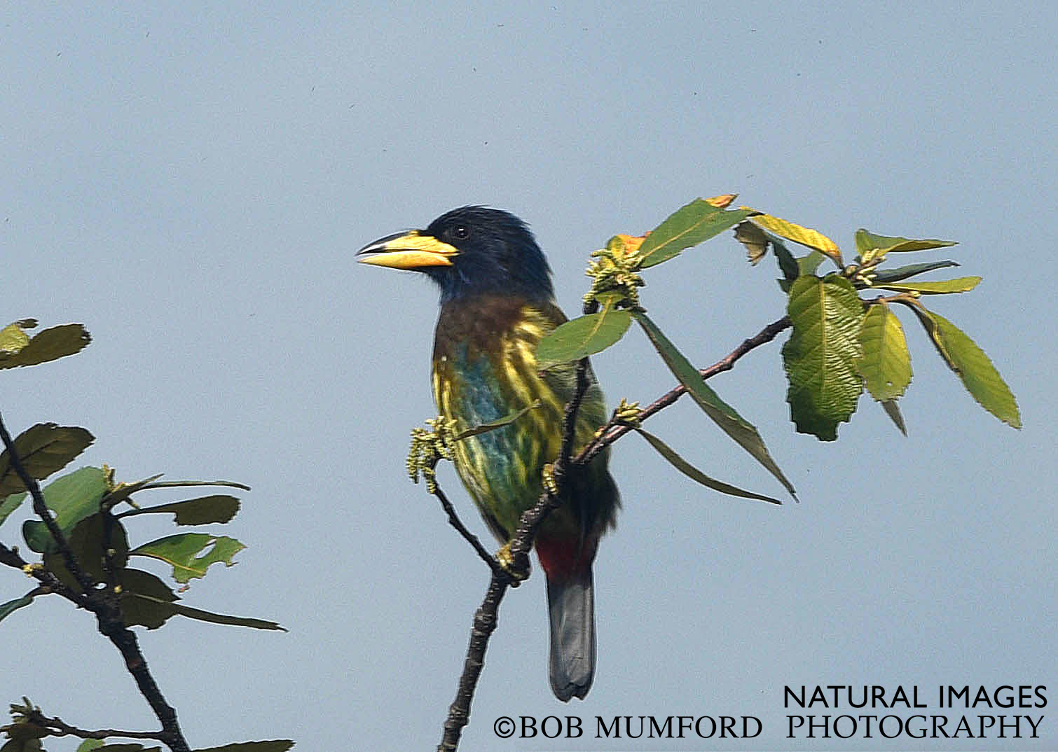 The uphill drive from Trogon Villa was filled with laughingthrushes of several species, while the downhill side had another group of birds like the barbets. This bird was vocalizing strongly from his high perch.