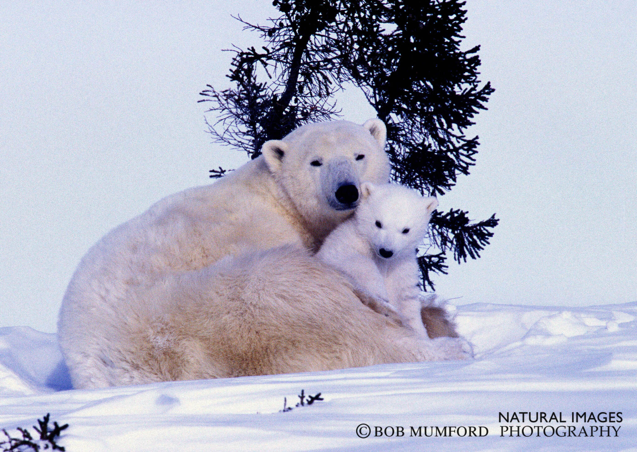 In late February to early March, Polar Bear mothers emerge from natal dens with their young and begin the long trek to Hudson Bay. The mothers have not fed in four months and have lost substantial body weight. The denning area is now a Canadian national park. A former trappers cabin nearby has been converted to a basic wilderness lodge which photographers and bear enthusiasts use as a base camp.