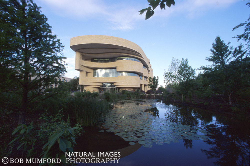 Completed in 2004 at a cost of $199 million, this museum is compelling both outside and in. A small pond was constructed at the east end of the building, and planted with native species that now host a variety of wildlife. Inside, the museum is chock full of artifacts and Native American art that delight the eye.