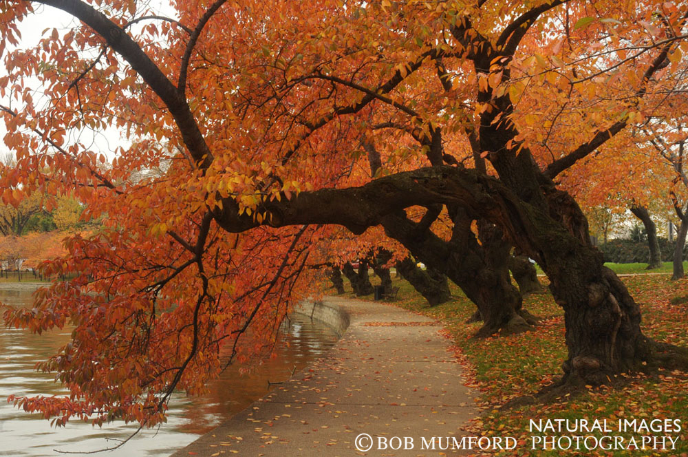 Most tourists visit DC in the spring or summer and few see that the famous cherry trees that ring the Tidal Basin also are colorful in the fall when their leaves turn a bright orange-red.