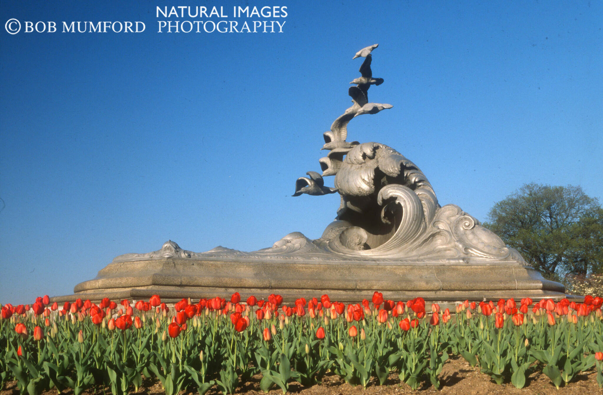 The Navy Marine Memorial of flying seagulls is located along the Potomac River across from Lady Bird Johnson Park. It was designed by Harvey Wiley Corbett, sculpted by Ernesto Begni del Platta and dedicated in October 1934. It commemorates the US Navy and US Merchant Marine sailors who perished in WW1, although it is commonly believed to commemorate Navy and USMC personnel.