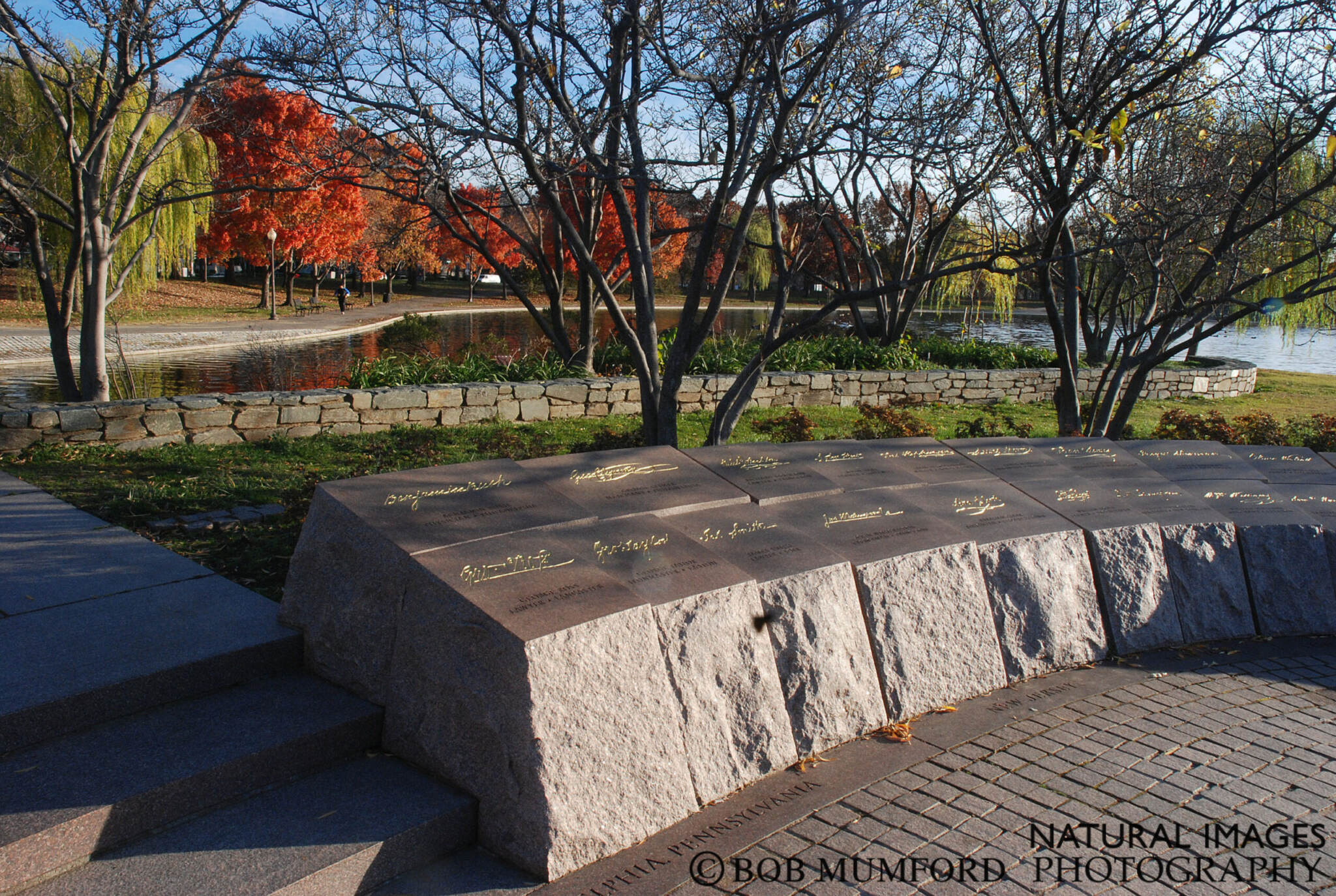 These blocks each celebrate one of the 56 signers of the US Constitution and are located on the Mall at Constitution Gardens.