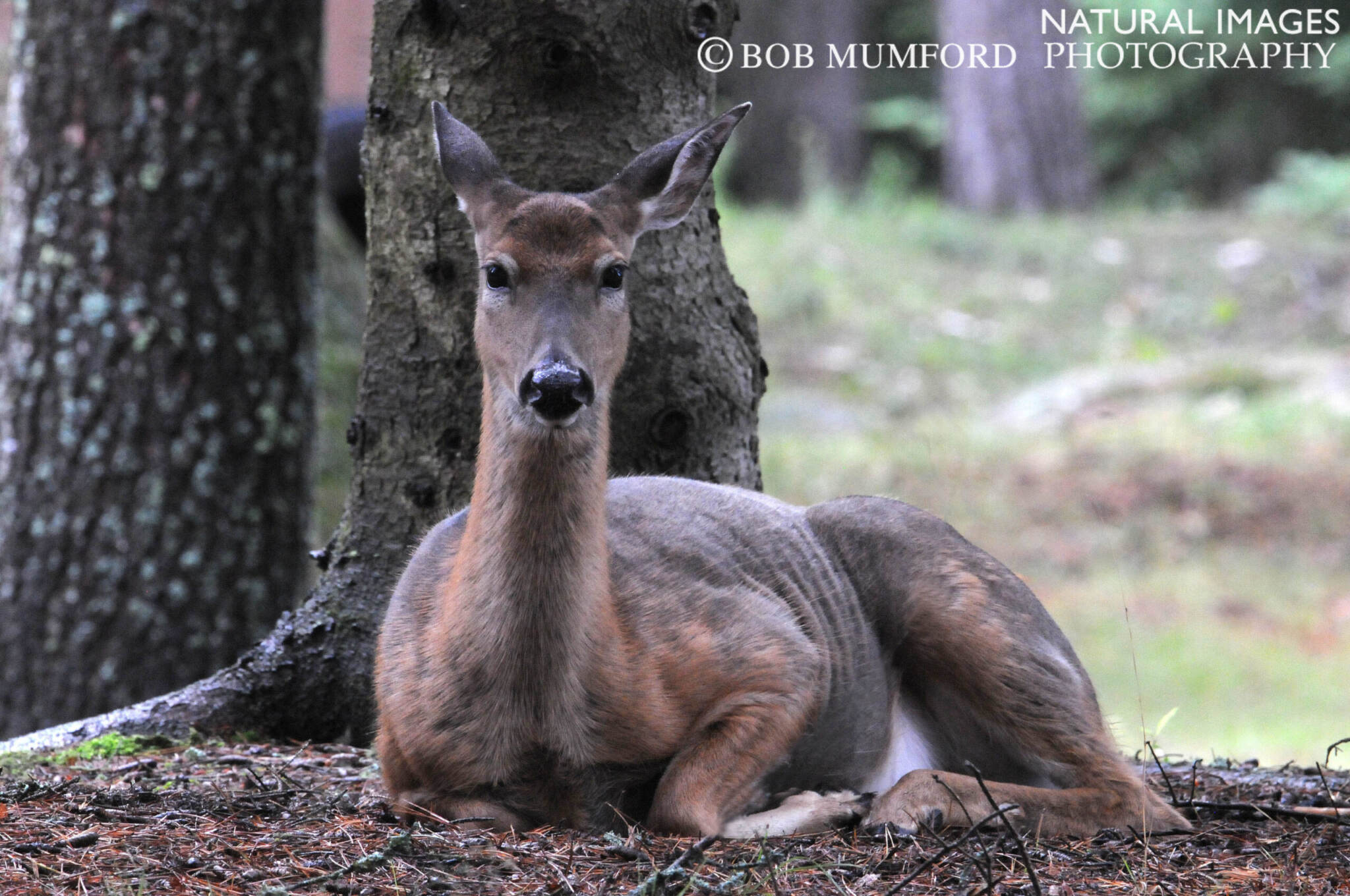 Driving in northern Wisconsin, we saw many deer. This resting doe was interesting because she was molting from her summer reddish coat to winter grey.