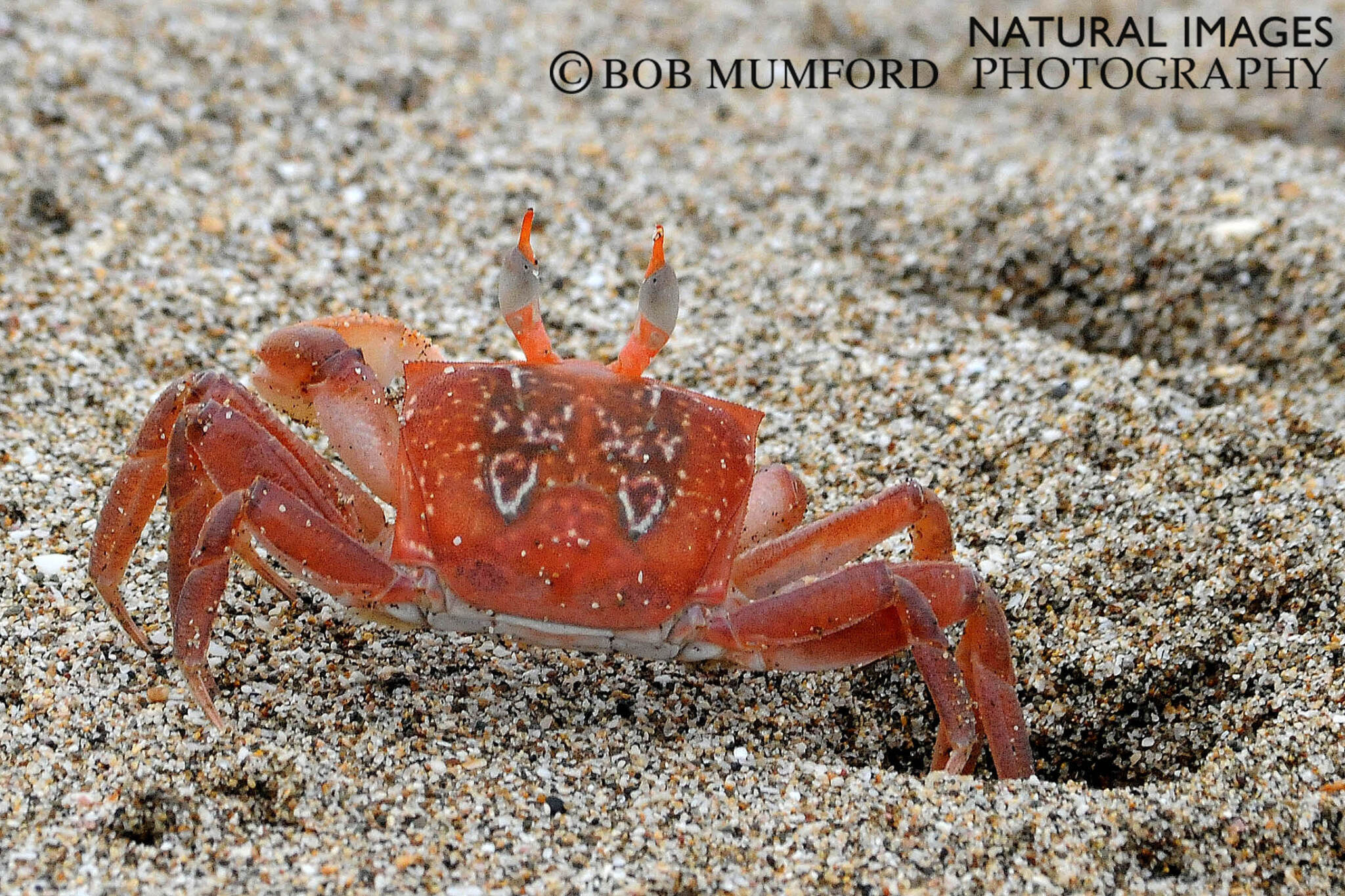 This crab was one of many in a big ball of them eating something as we drove along the adjacent highway. Before I could photograph the ball, a dog came running up the beach and scattered the crabs. I was reduced to photographing just one near its hole. The photo was made just north of Puerto Lopez.