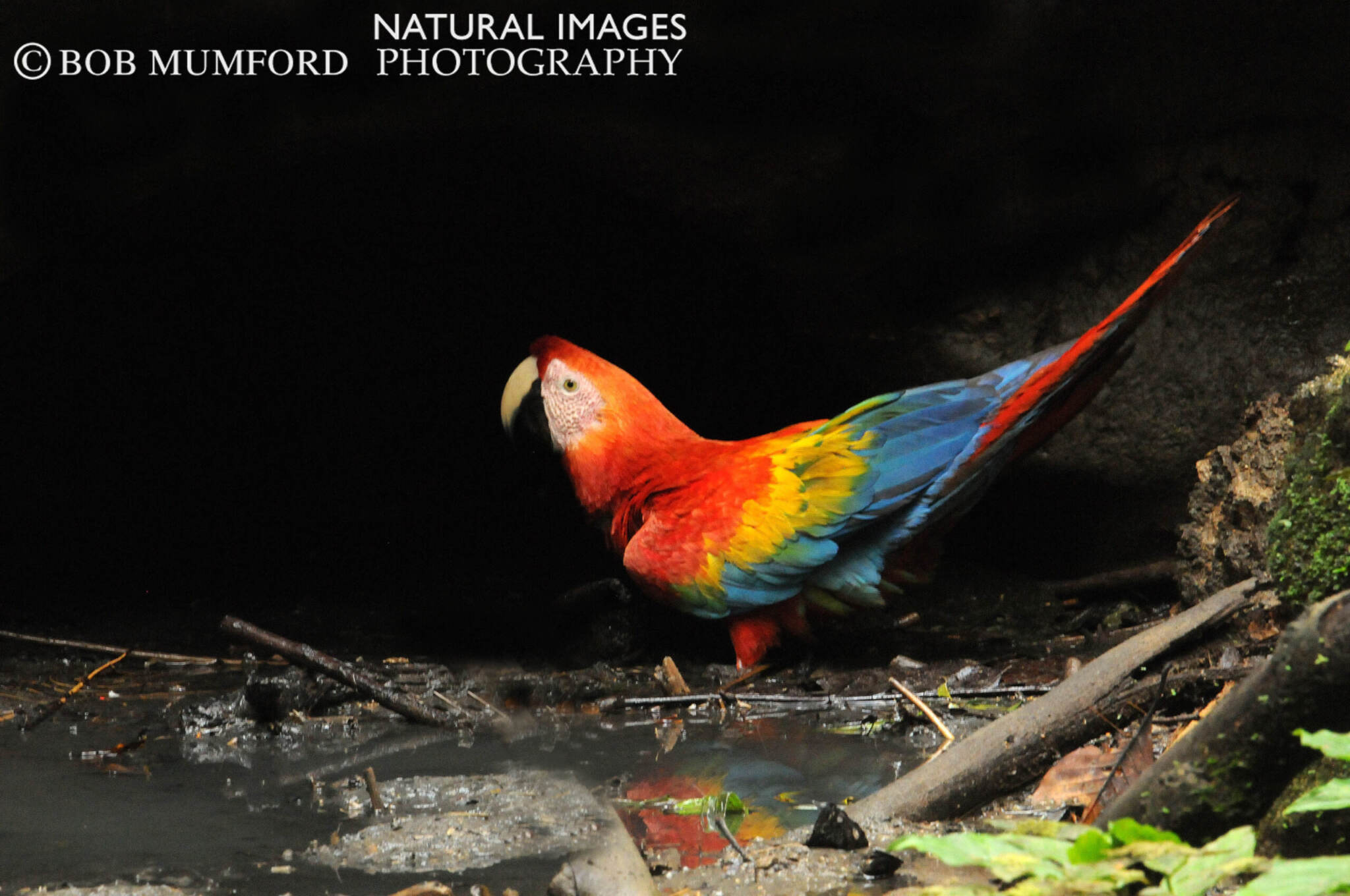 Every day hundreds of parrots and parakeets come to a clay lick along the Napo River and many also visit a spring in the same area to drink natural mineral water. I waited four hours at the spring for this macaw to come down from tree tops to drink.