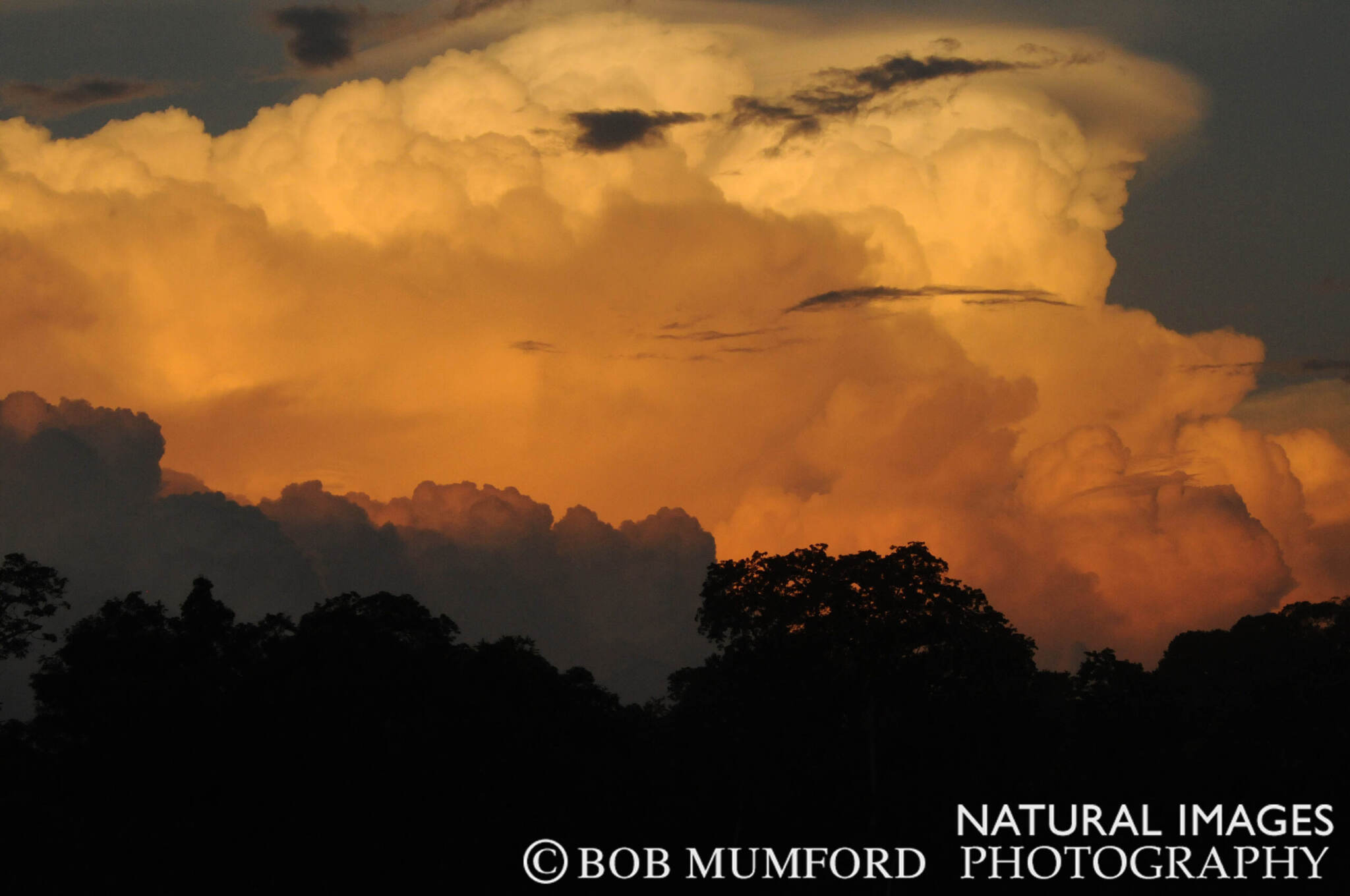 Most afternoons, even in the driest months, it rains over the lowlands of Oriente Province. Often these are thunderstorms, bringing with them huge clouds that are lit up at sunset in shades of red and orange.