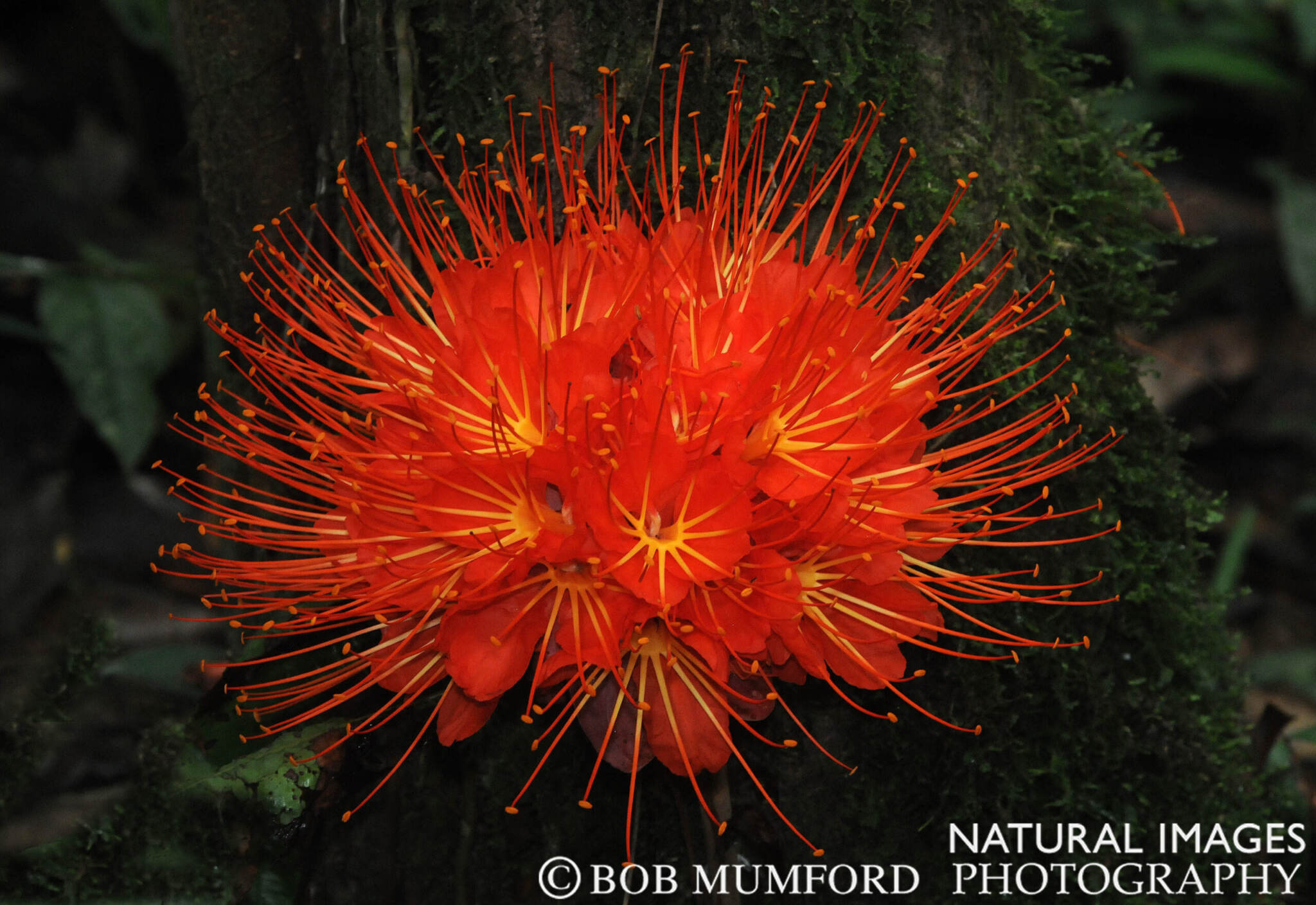 An unidentified bloom, about six inches in diameter, on a tree at the Tiputini