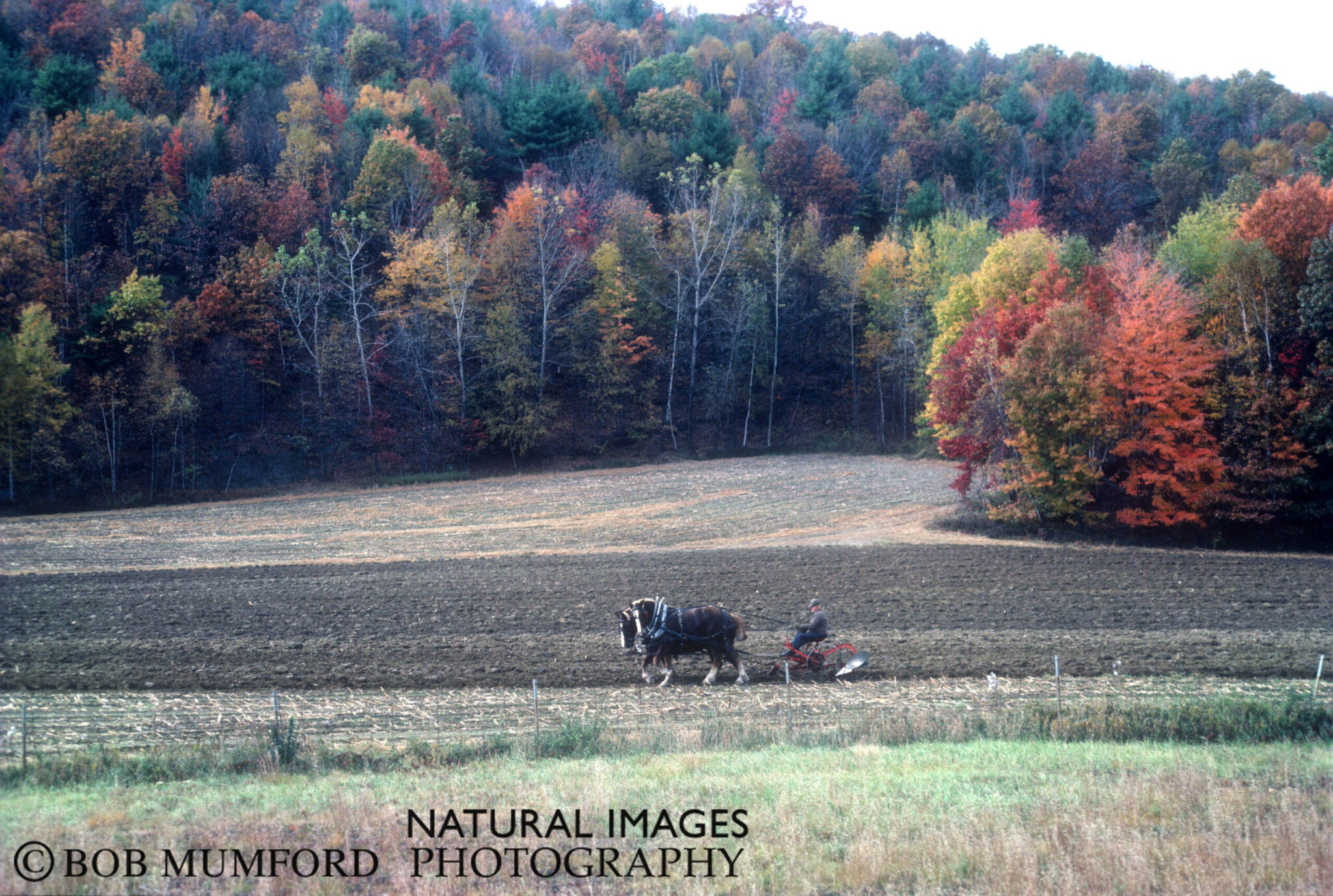 Even though the vast majority of small farmers now use modern equipment, on rare occasions one still encounters a traditionalist who uses plow horses to work his fields, as this man was doing in the southern part of the state.