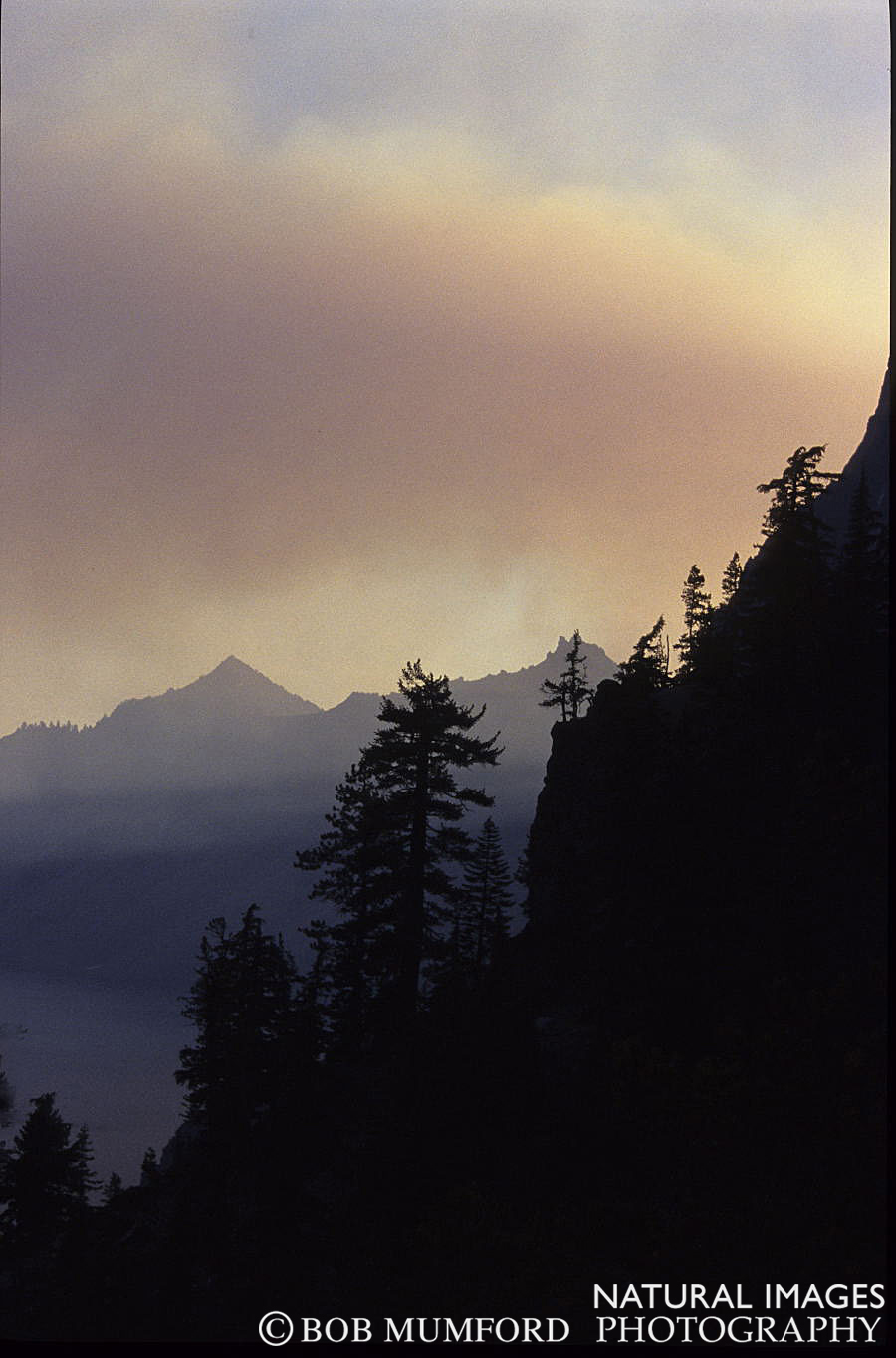 An unusual cloud hangs over Crater Lake at the National Park on an early October morning.