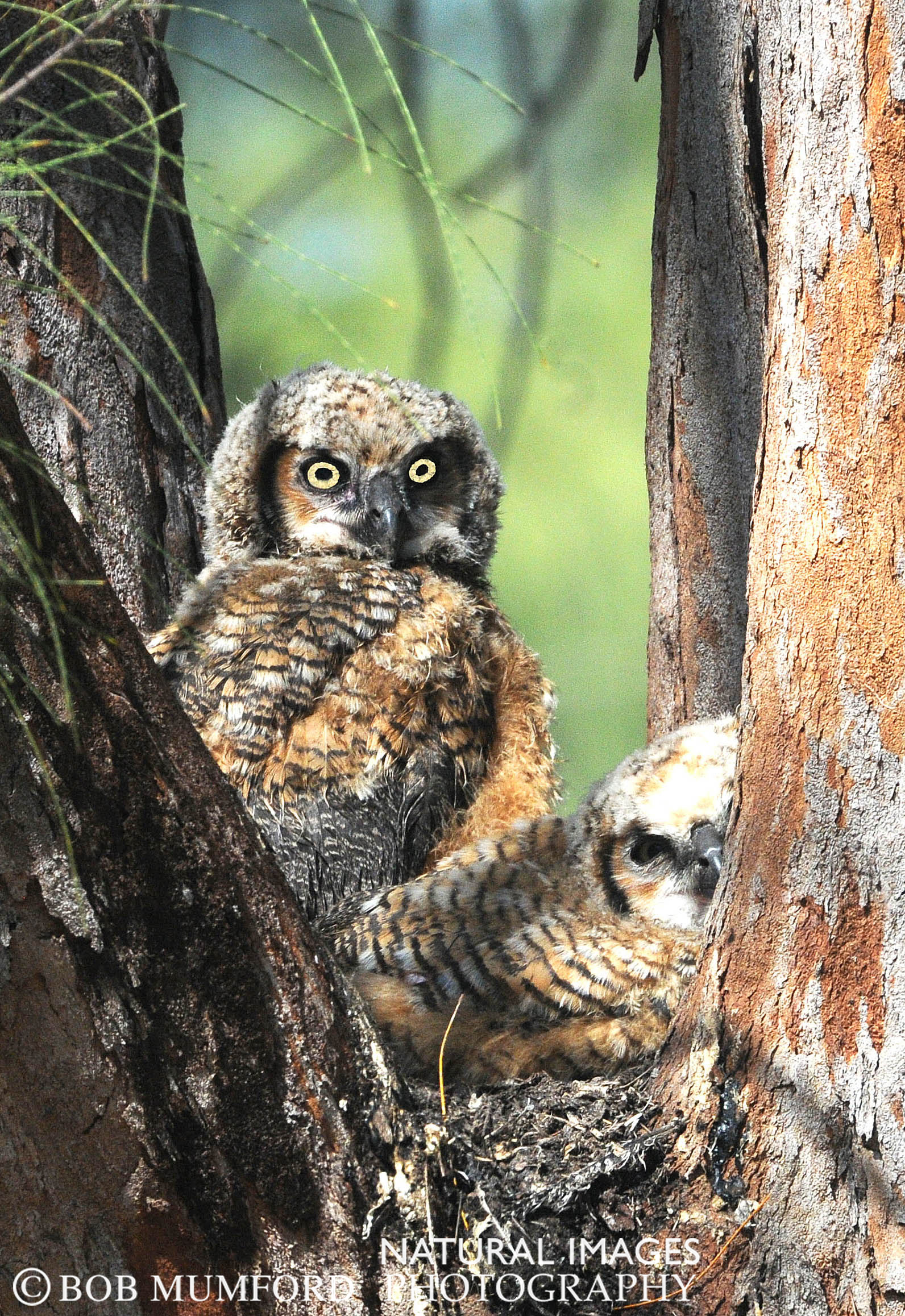 Two young Great-horned Owls on their nest in the Fort DeSoto Park, south of St. Petersburg. This park is one of the best places in Florida to see neotropic migrants in the spring.