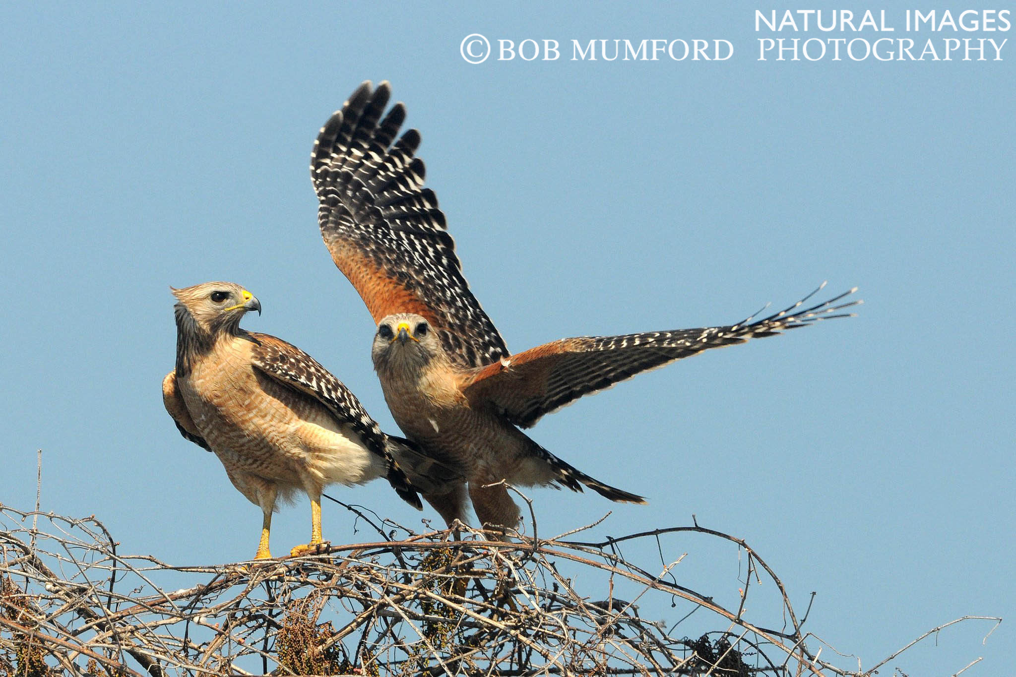 A mated pair of Red-shouldered Hawks at Loxahatchee National Wildlife Refuge. We were sitting in the car watching other birds when these two began loudly vocalizing right behind the car. I jumped out for a couple of quick images.