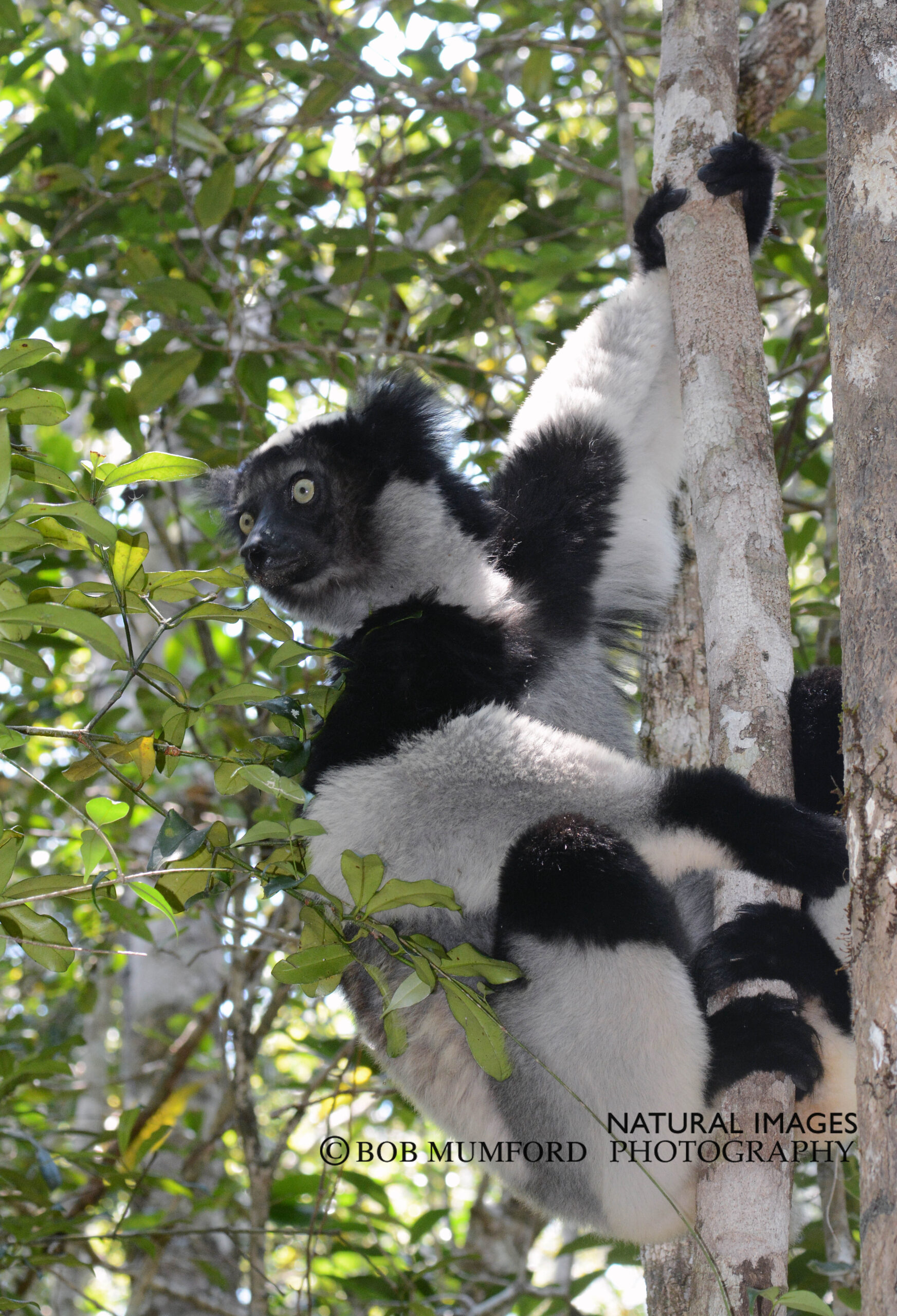 This attractive lemur constantly vocalizes. Their calls can be heard a very long ways. This one was photographed at the Andasible National Park.