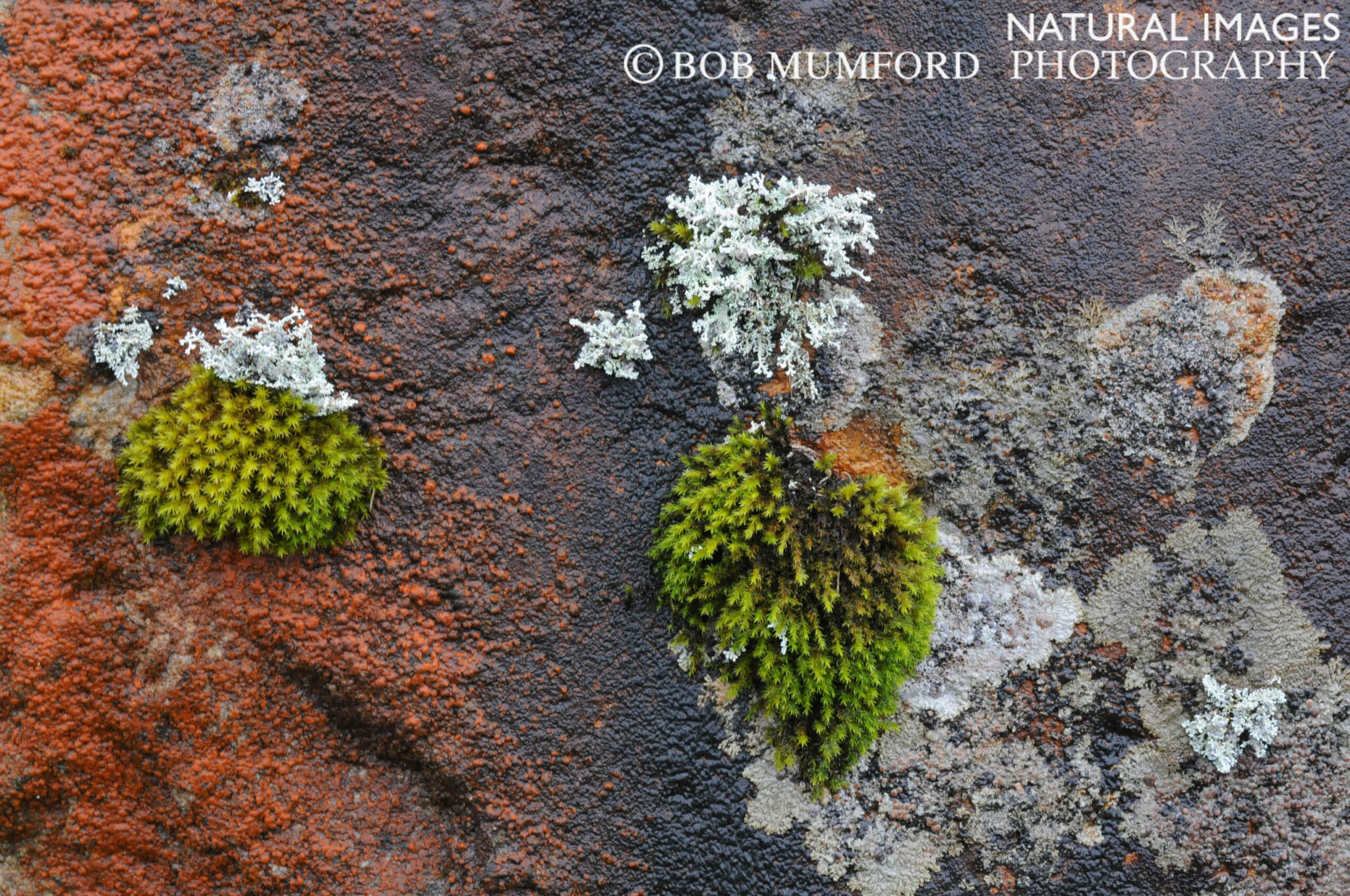 Fungi, Moss and Lichens on rock at Haast Village, South Island