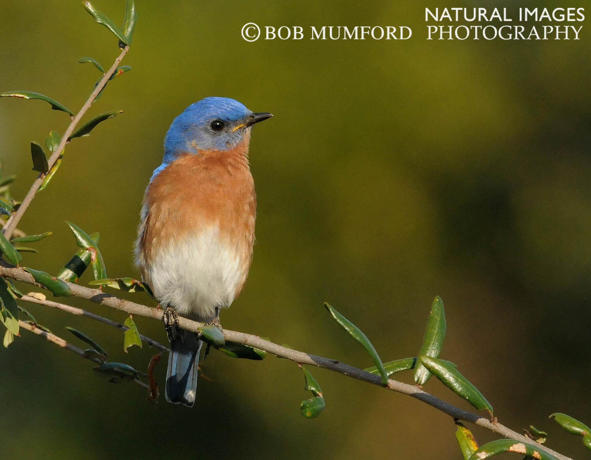 A male Eastern Bluebird in bright spring plumage in the Harris Neck National Wildlife Refuge near South Newport, GA. Decades ago bluebirds were greatly diminished from historical levels due to European Starlings and House Sparrows occupying all available nest cavities. Extensive artificial next boxes have greatly increased bluebird numbers.