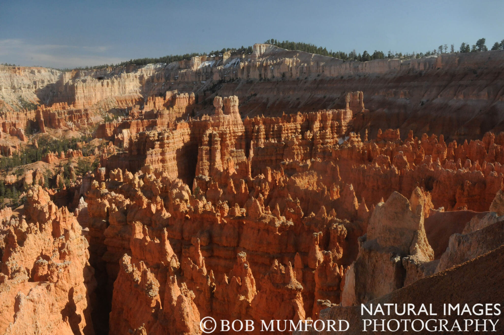 A scene of the world famous hoodoos at Bryce Canyon National Park in southern Utah from the rim of the canyon.