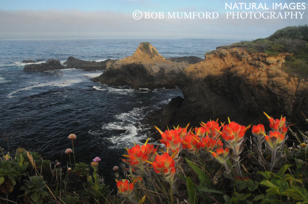The cool wind of the Pacific slows the arrival of spring along the coast of Northern California, but when it arrives, there is a plethora of colorful wildflowers like this paintbrush. The roaring surf can make one feel like he/she is present a few hundred years ago if one faces to the west.