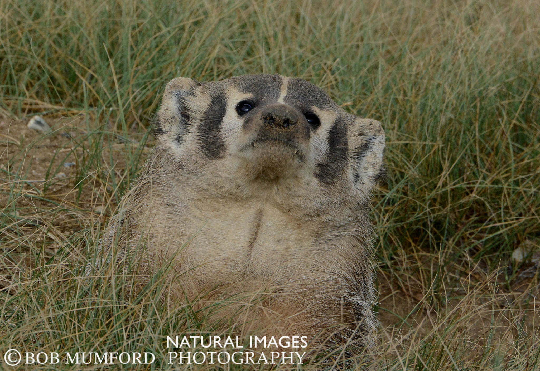 American Badgers are mostly nocturnal and usually quite skittish, so seldom seen by visitors to government properties. The refuge manager at Arapaho National Wildlife Refuge had found this one that was quite tolerant of human observers. He told us where the den of this animal was located. It required three trips to this location, but on the third, we quickly saw the badger running for its hole. But it did not disappear into the hole, rather stayed up and gave us a chance to approach and make multiple images.