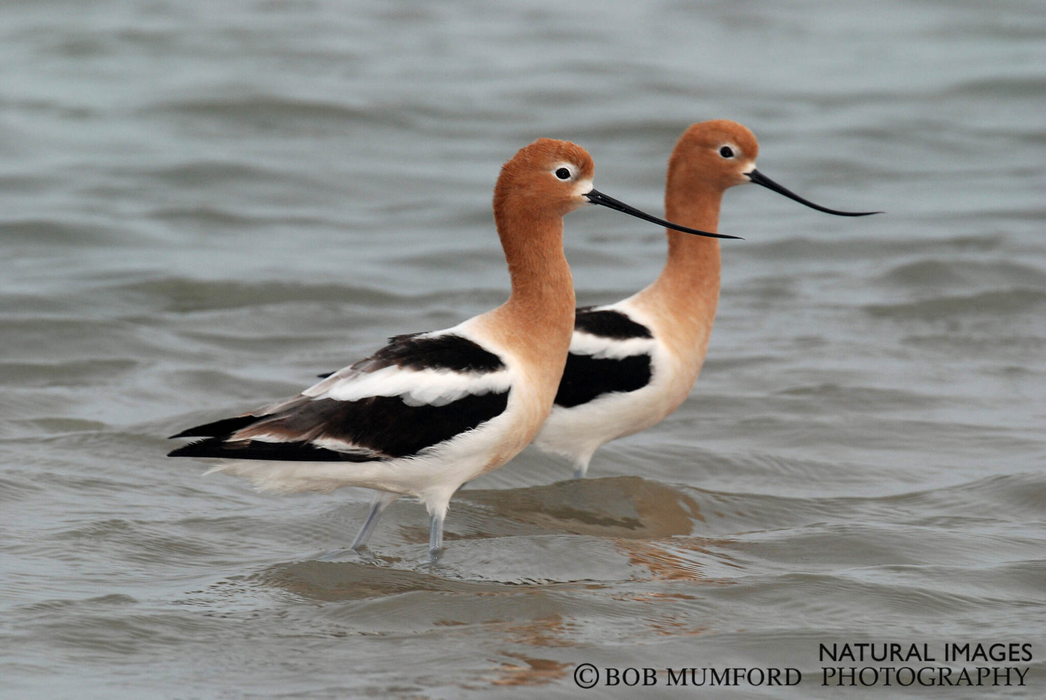 A pair of Avocets on the beach at Boca Chica State Park in April. Note the different curvitures in the bills of the male and female. The female bill is more upturned than the male bill.