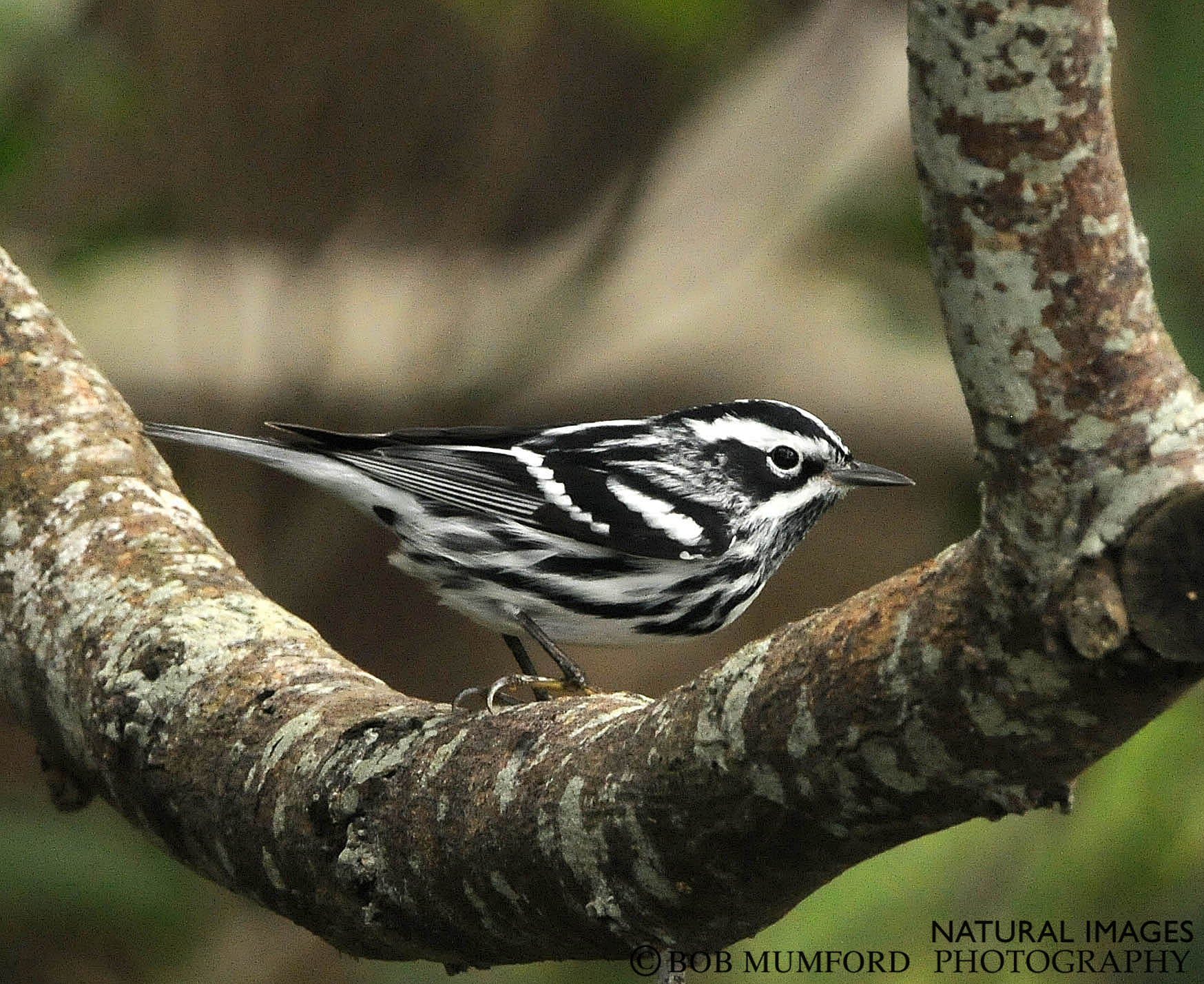 A Black and White Warbler migrating through South Padre Island headed north to its breeding area far to the north.